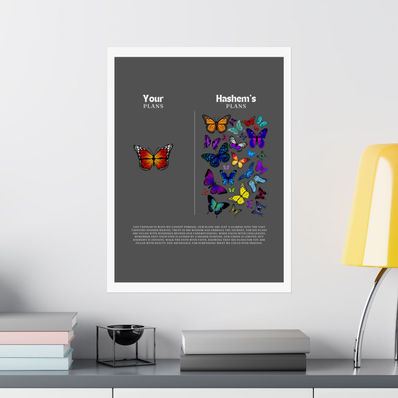 Celebrate the beauty of divine guidance with our "Hashem's Plans" Butterfly Poster. This uplifting design reminds us that, just like a butterfly’s journey, life unfolds in ways we may not expect but always with a purpose. Embrace the idea that Hashem’s plans are filled with unexpected beauty and wisdom, guiding us through life’s twists and turns. Perfect for those who find comfort and inspiration in trusting the process, this poster brings a sense of peace and reflection to any space.