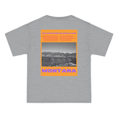 Celebrate the scenic beauty of Big Sky Country with our Montana City Print t-shirt. This shirt highlights one of Montana's most iconic rivers, the Yellowstone River, flowing through breathtaking landscapes and rugged terrain. The design captures the tranquil yet powerful essence of the Yellowstone River, perfect for those who love the outdoors and the natural splendor of Montana.