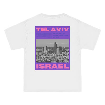 Show off your love for Tel Aviv with our stylish Tel Aviv City Print T-Shirt! This classic unisex short sleeve tee features a vibrant, detailed print of a skyline view of Tel Aviv's iconic Lev Ha'ir, reflecting the rich cultural tapestry and harmonious diversity of the region.